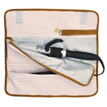 女性の必需品、ヘアアイロンを持ち運ぶ専用ケースです。コードは専用ポケットに入れられるのでアイロン本体と接触することなく安心です。ミニアイロンからコテまで、すっぽり、コンパクトに収納できます。持ち手が付いているので吊り下げも可能。