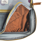 ボディカラー ベージュピンクは「クロアチア」、ネイビーは「北欧」とおそろいの柄です。片面に荷物の収納に便利なメッシュポケット付きファスナー開閉収納がつき、もう片面には荷崩れを防ぐ伸縮バンドが付いています。
