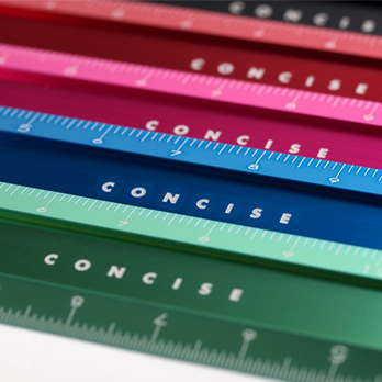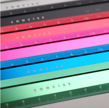 シンプルなアルミ製の直定規、目盛はコンパクトな12cm。