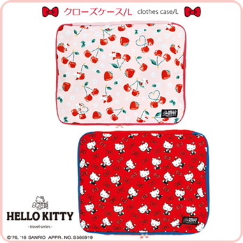 荷造りでも女子力UP♪大荷物の時や、2~3日の旅行にぴったり!内生地にもキティモチーフをプリントし、旅じたくが楽しくなるケースです★